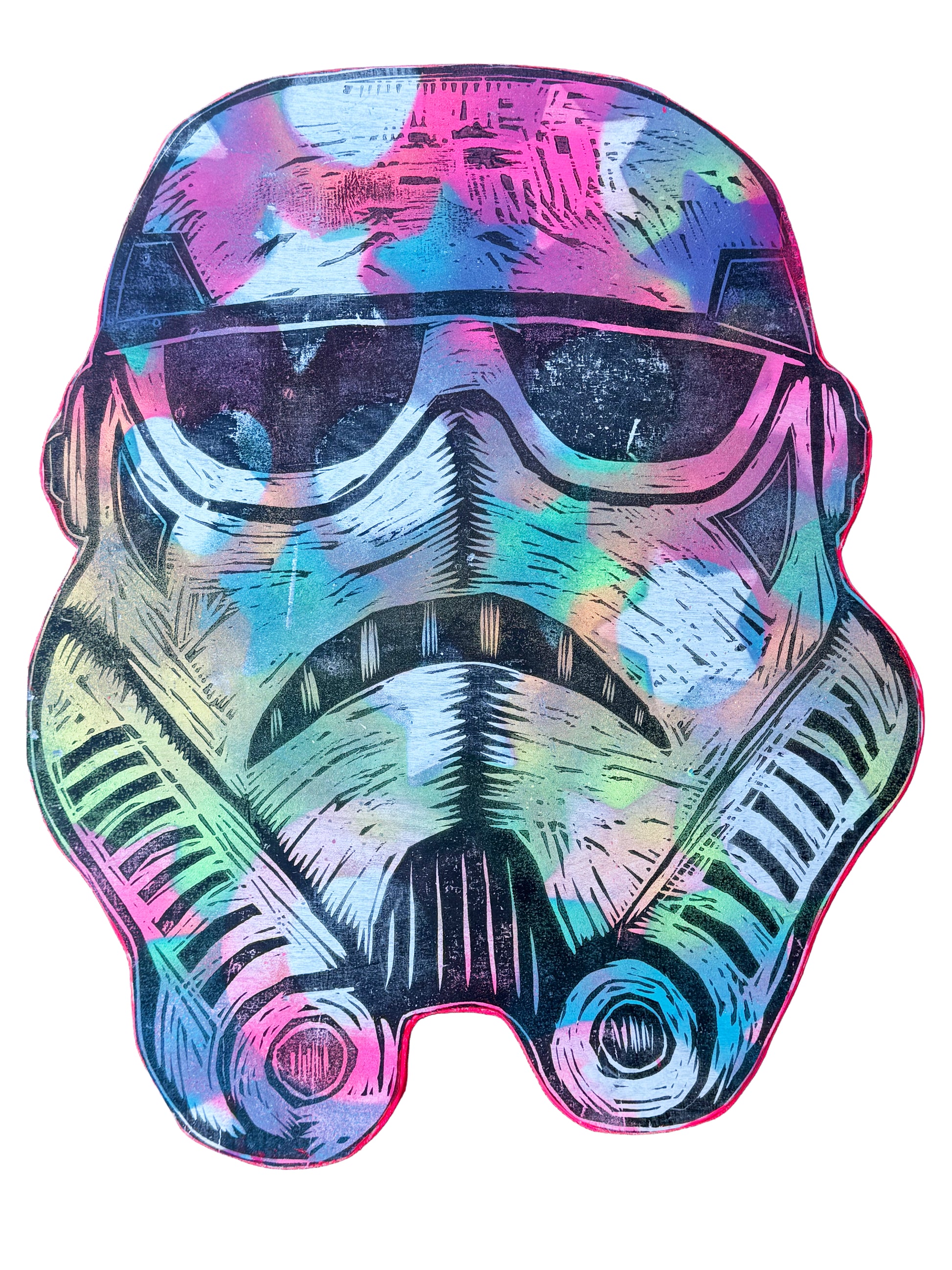 Big Stormtrooper Woodcut handprinted on Wooden Panel 18"x 28"