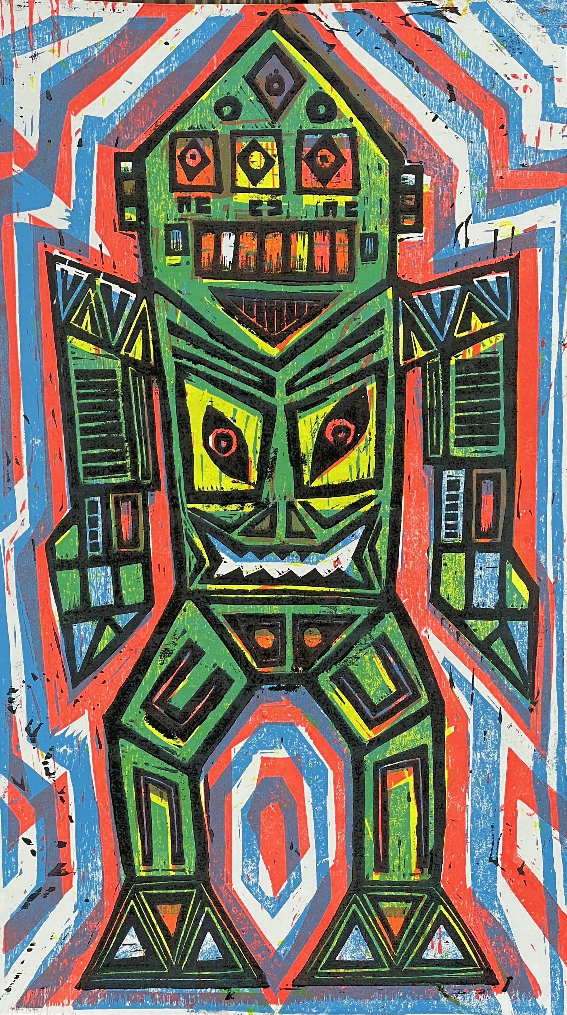 ⩙ My woodcuts are carved from Baltic Birch or Japanese Shina using an assortment of Japanese gouges printed on American-made presses, fueled by ice-cold Mountain Dew with Guided by Voices always playing loudly in the background!