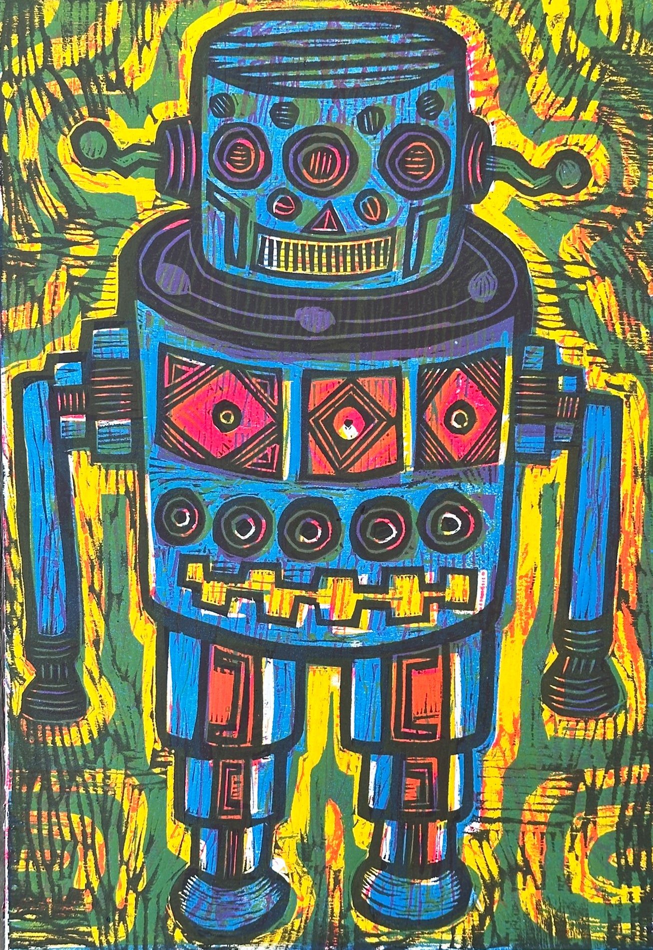 ⩙ My woodcuts are carved from Baltic Birch or Japanese Shina using an assortment of Japanese gouges printed on American-made presses, fueled by ice-cold Mountain Dew with Guided by Voices always playing loudly in the background!