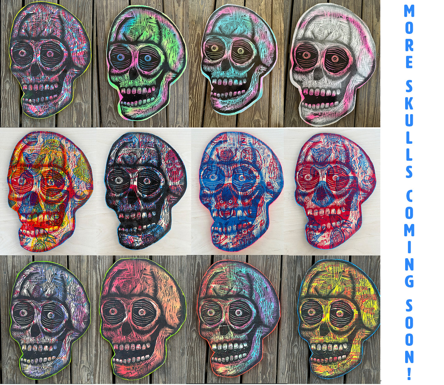 I'm printing up a few of these skull woodcuts on shaped panels. I think the size and price of these would allow you to collect a few if you were so inclined.