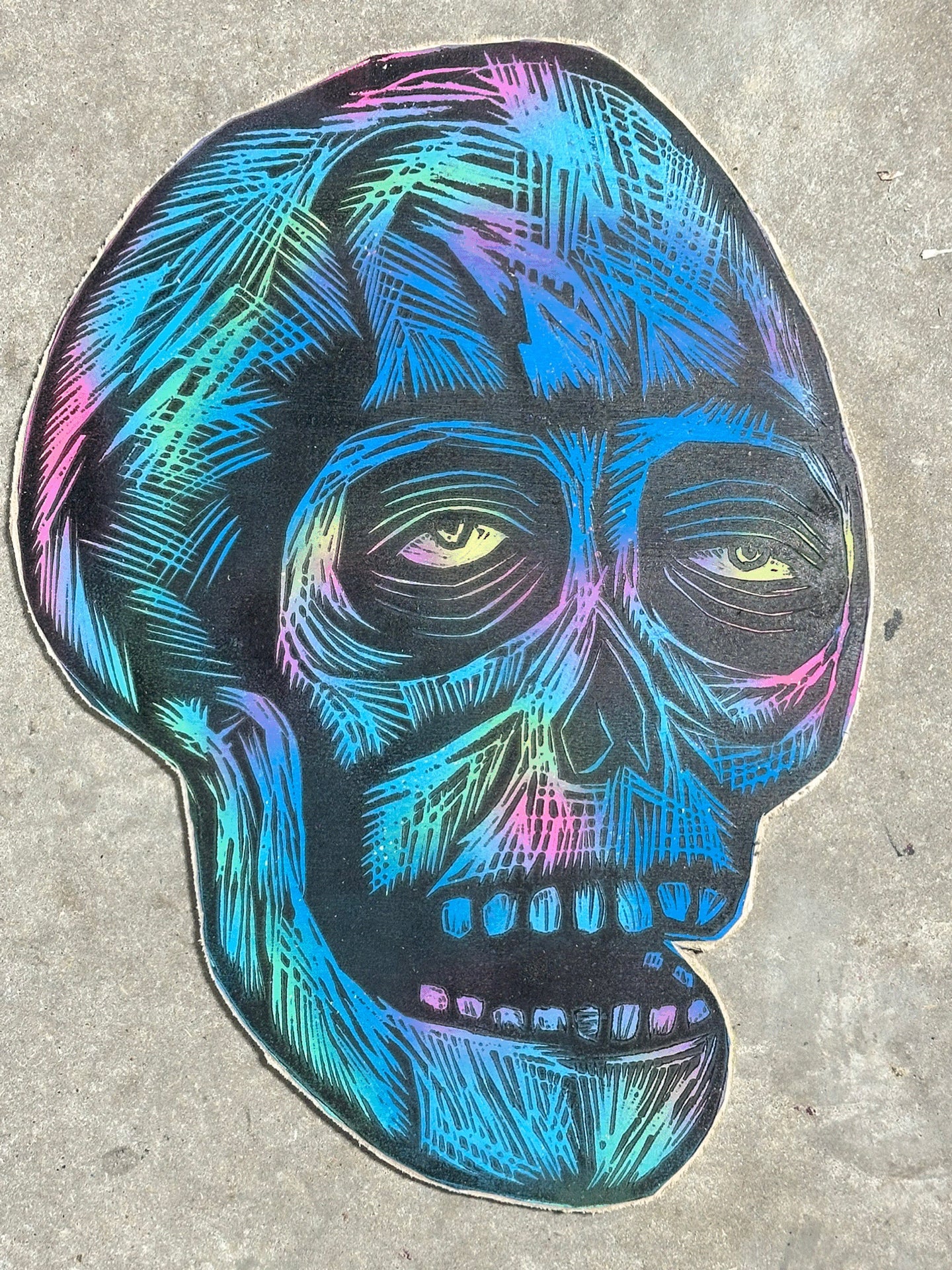Blue Skull Woodcut printed on Baltic Birch Panel