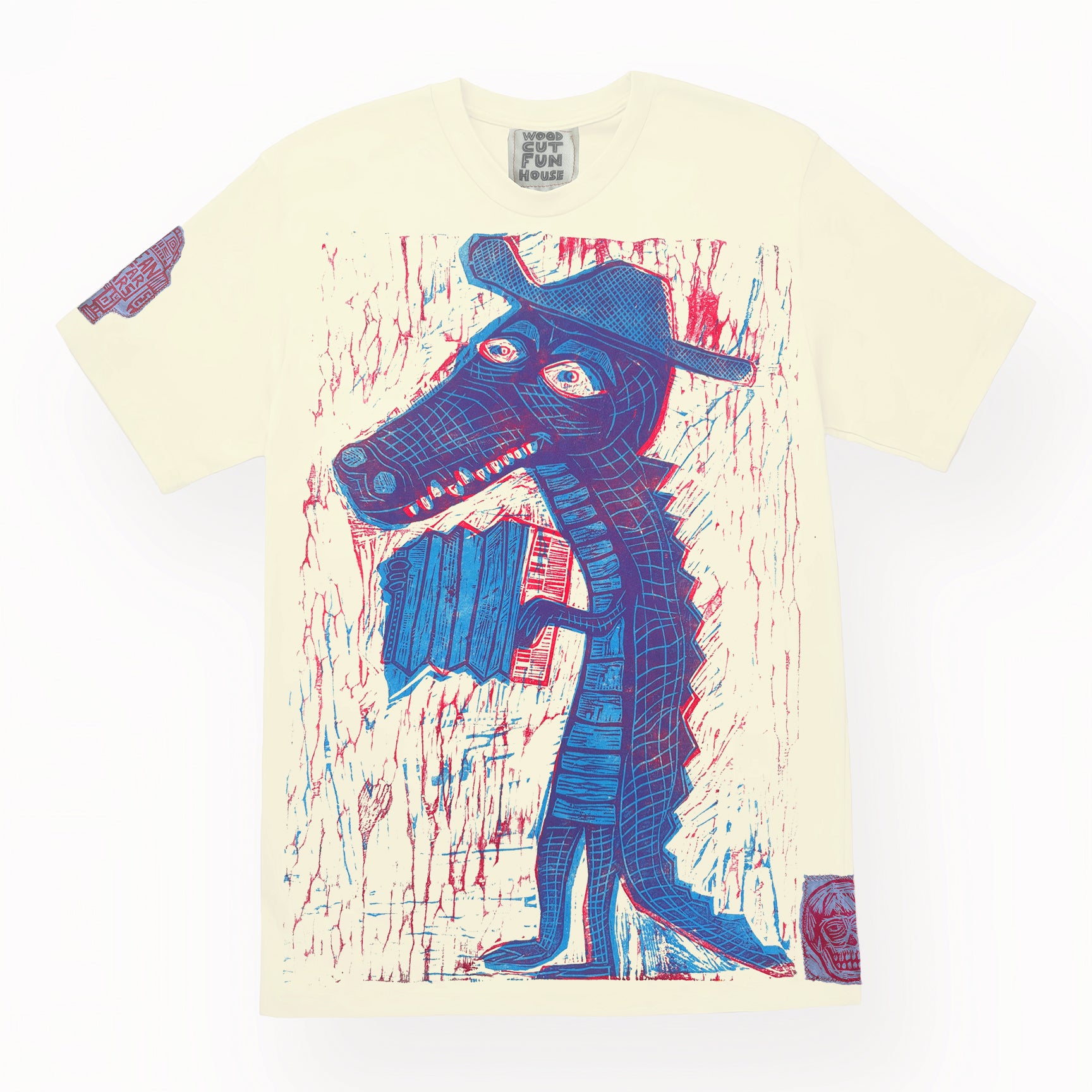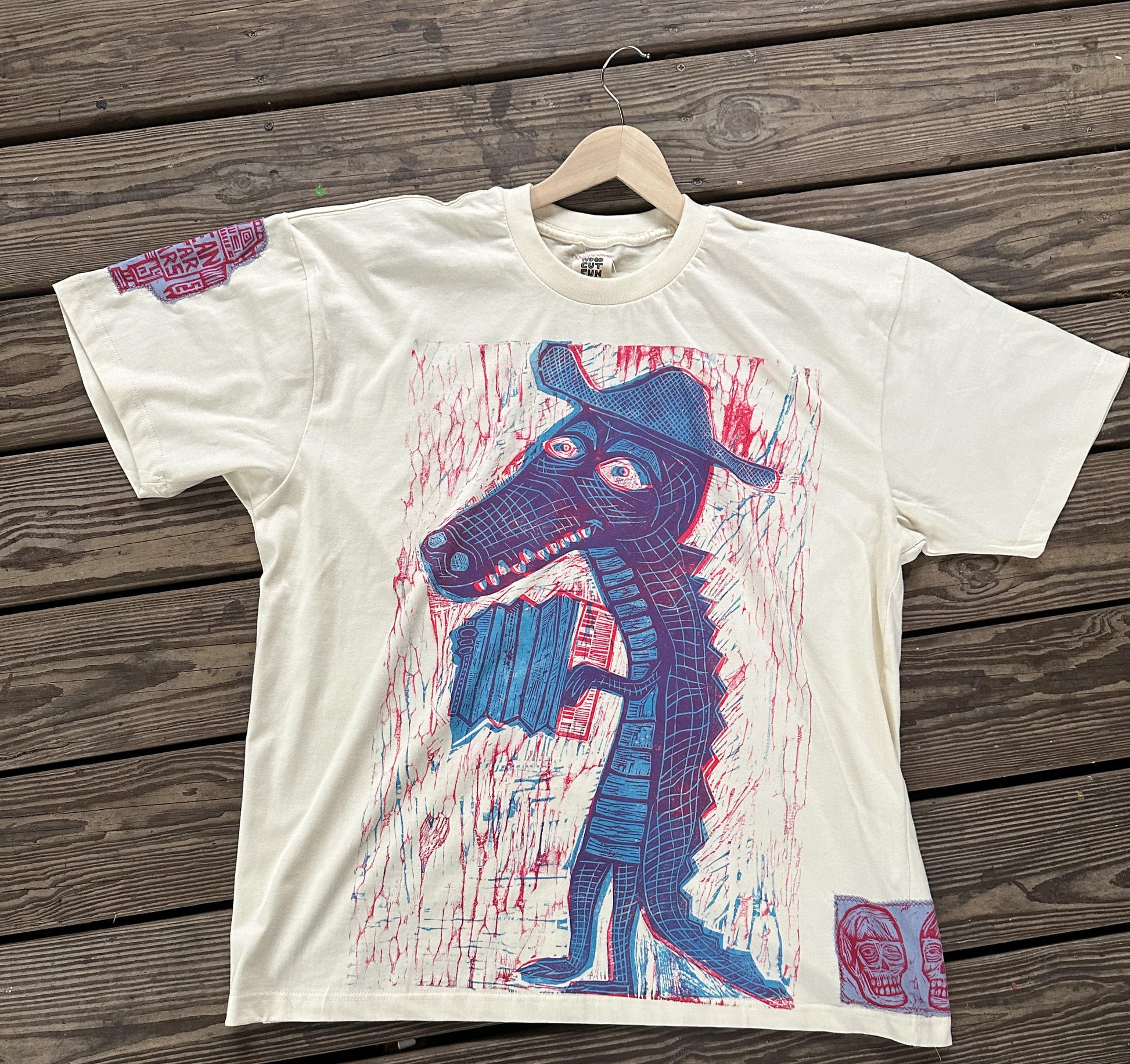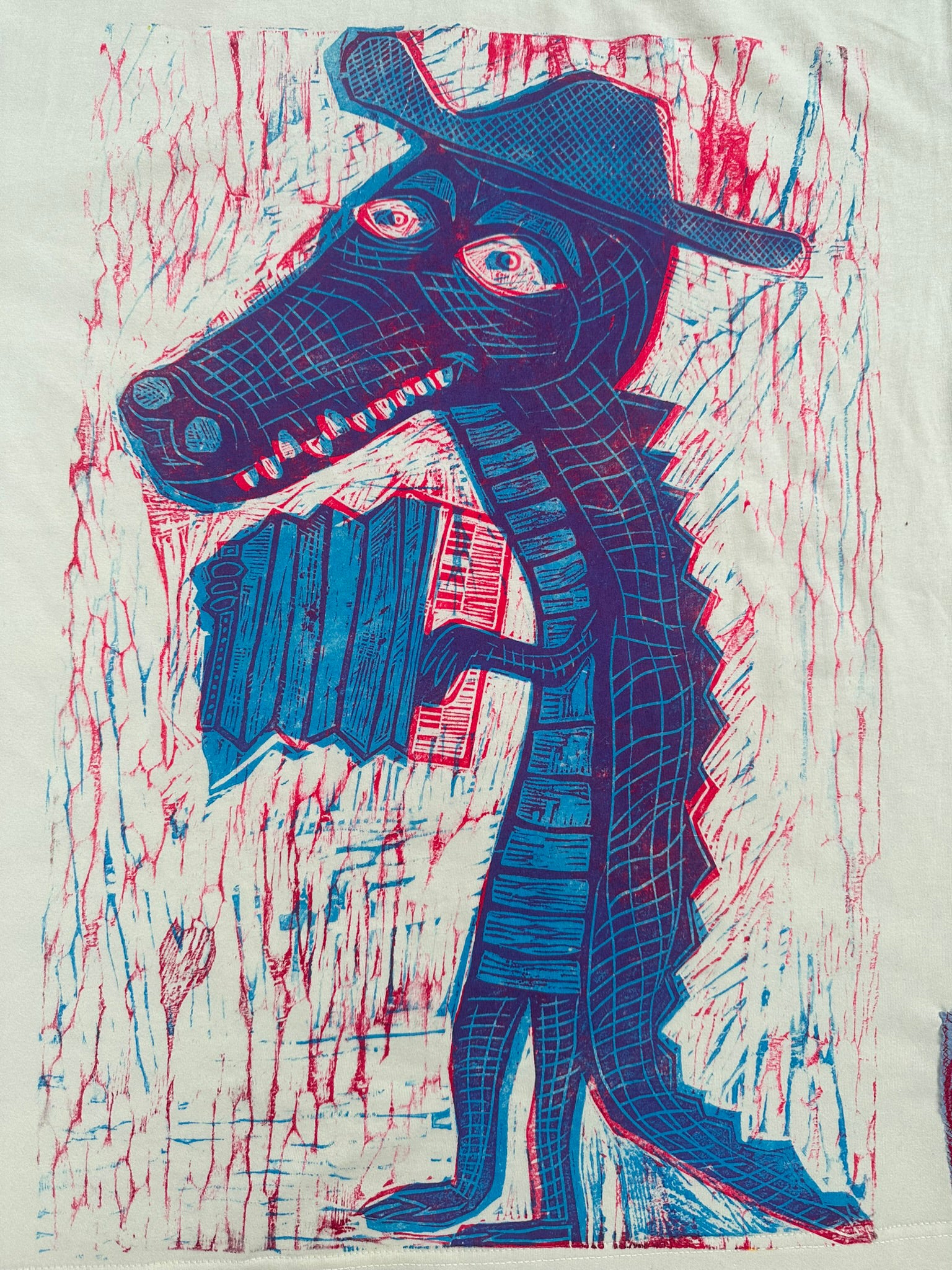 Cajun Gator Woodcut printed Graphic Tshirt