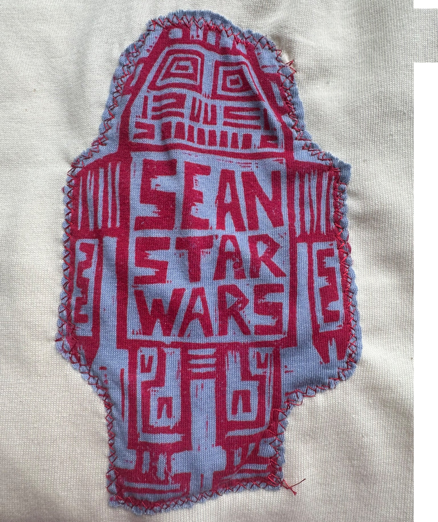 Custom Label, Sean Starwars Robot Applique, Double Skull Applique (with my signature and edition number)-Sewn in by my wife Julie