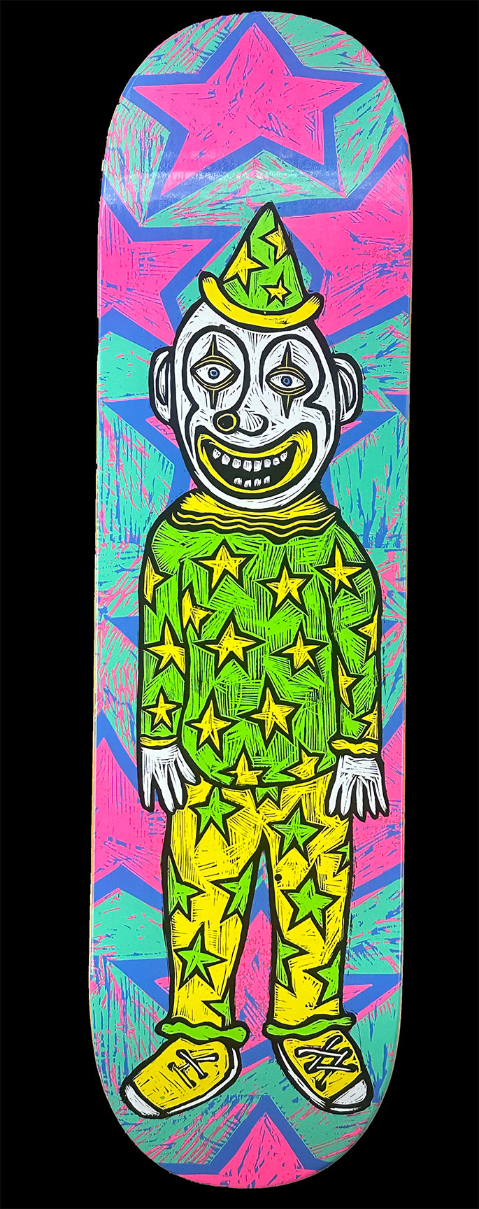 Starstruck Clown Skateboard Graphic Woodcut