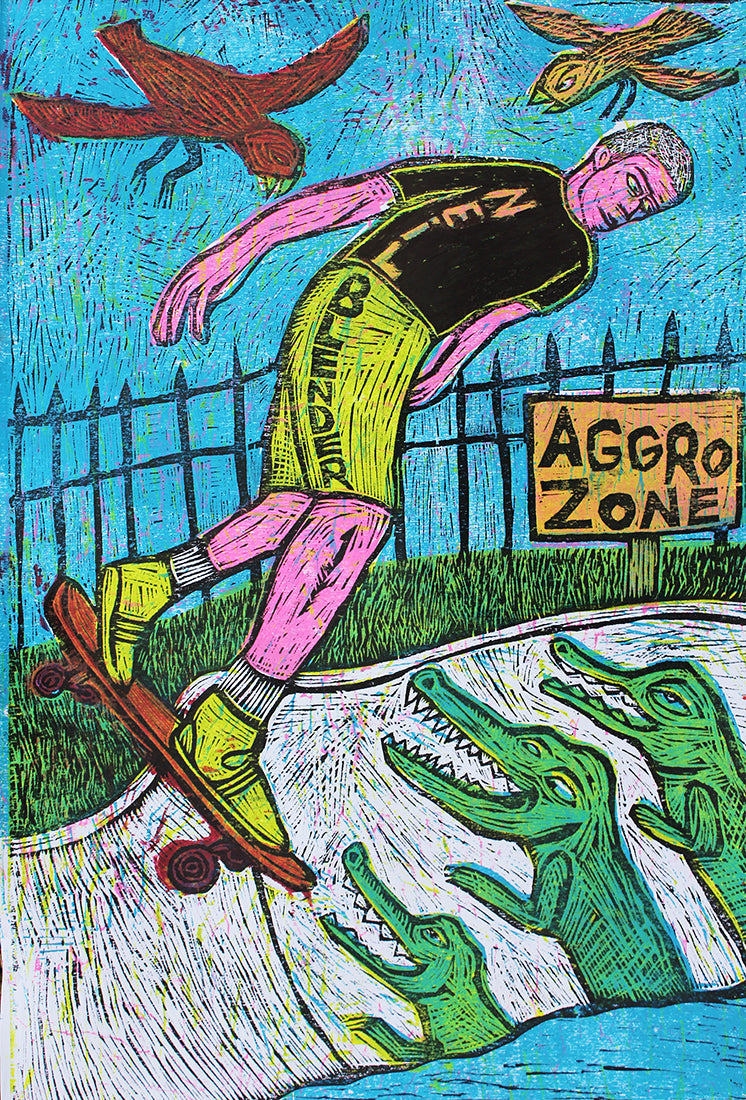 Neil Blender Aggro Zone Multi Color Woodcut Handpulled Print