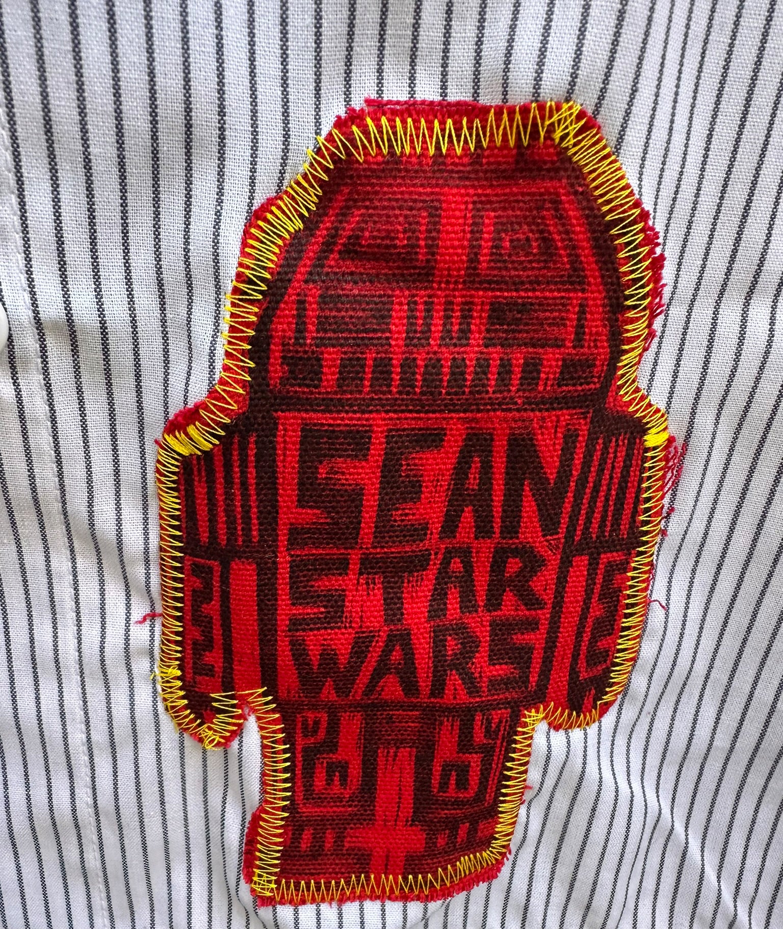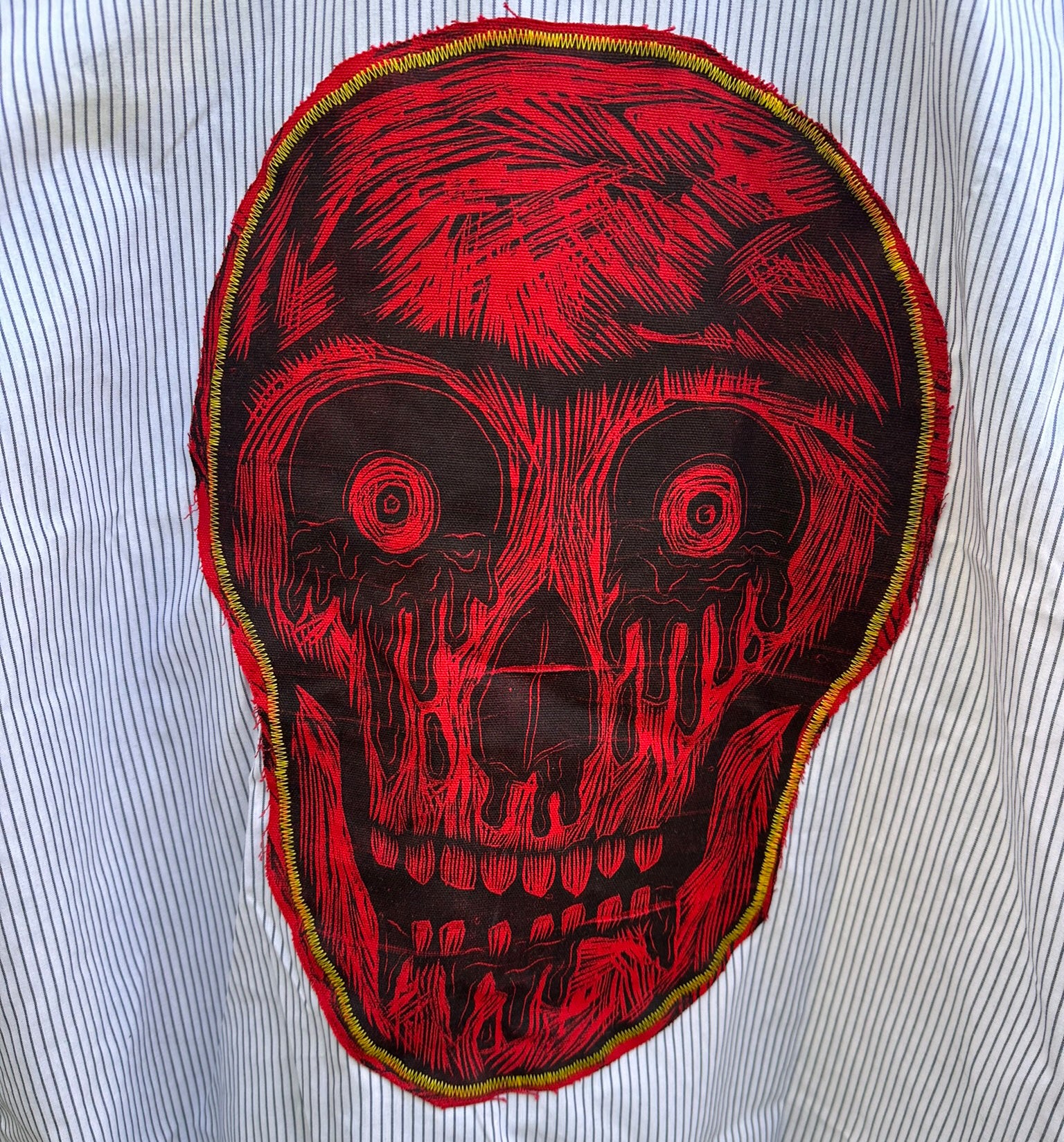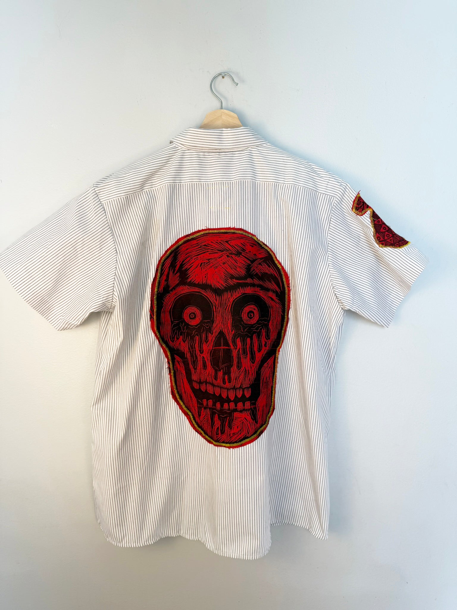 This is something we just started doing! We're super excited about the response! This is the white shirt with Stripes, and the bloody eyes Skull Applique on the back.