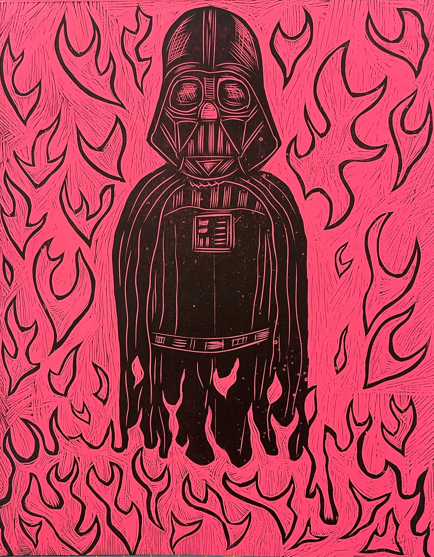 ⩙ My woodcuts are carved from Baltic Birch or Japanese Shina using an assortment of Japanese gouges printed on American-made presses, fueled by ice-cold Mountain Dew with Guided by Voices always playing loudly in the background!