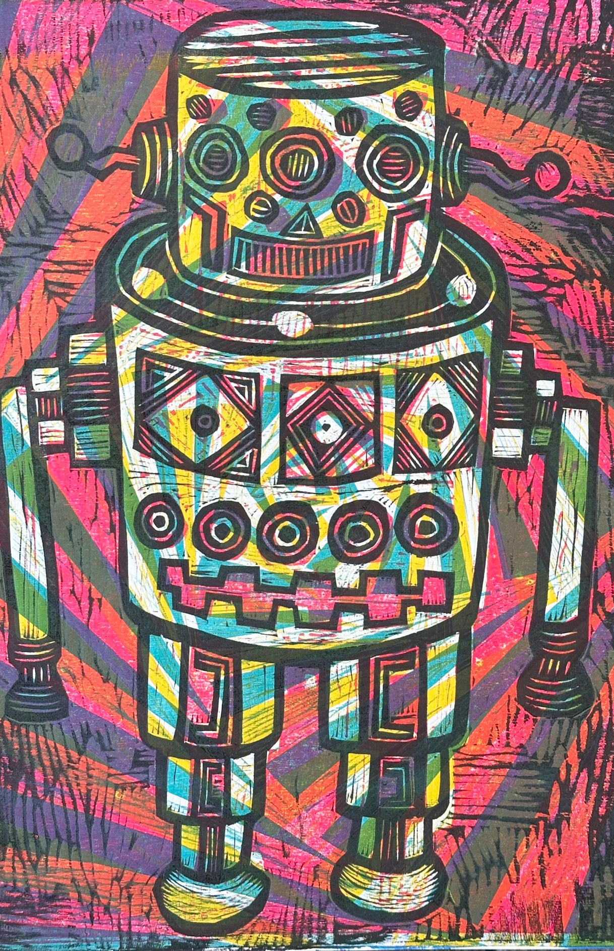 ⩙ My woodcuts are carved from Baltic Birch or Japanese Shina using an assortment of Japanese gouges printed on American-made presses, fueled by ice-cold Mountain Dew with Guided by Voices always playing loudly in the background!