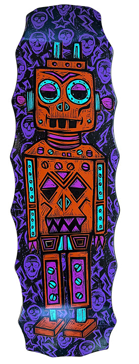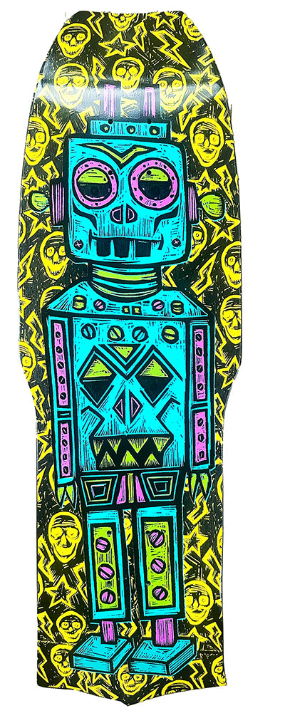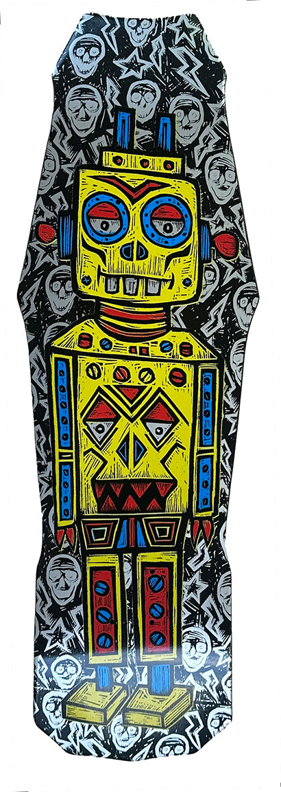 This is one of the most exciting projects I've ever been a part of! Ever since I was 15 Skateboarding has been a huge influence on my life. I'm almost 55 now and I can't believe what I'm getting to do these days! After my initial run of commissioned graphics for Select Distibution (Formerly VISION Skateboards) I am now partnered with Select to produce skateboards with my Woodcut Graphics on custom shapes! For now we are only offering 3 different boards in a very limited run.But our expectation is that we will be offering many more graphics in the coming months!!!