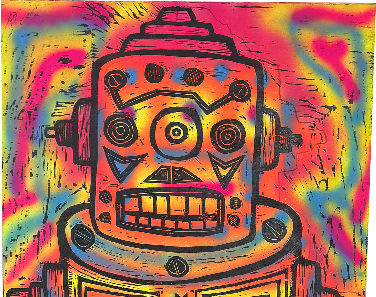 ⩙ My woodcuts are carved from Baltic Birch or Japanese Shina using an assortment of Japanese gouges printed on American-made presses, fueled by ice-cold Mountain Dew with Guided by Voices always playing loudly in the background!