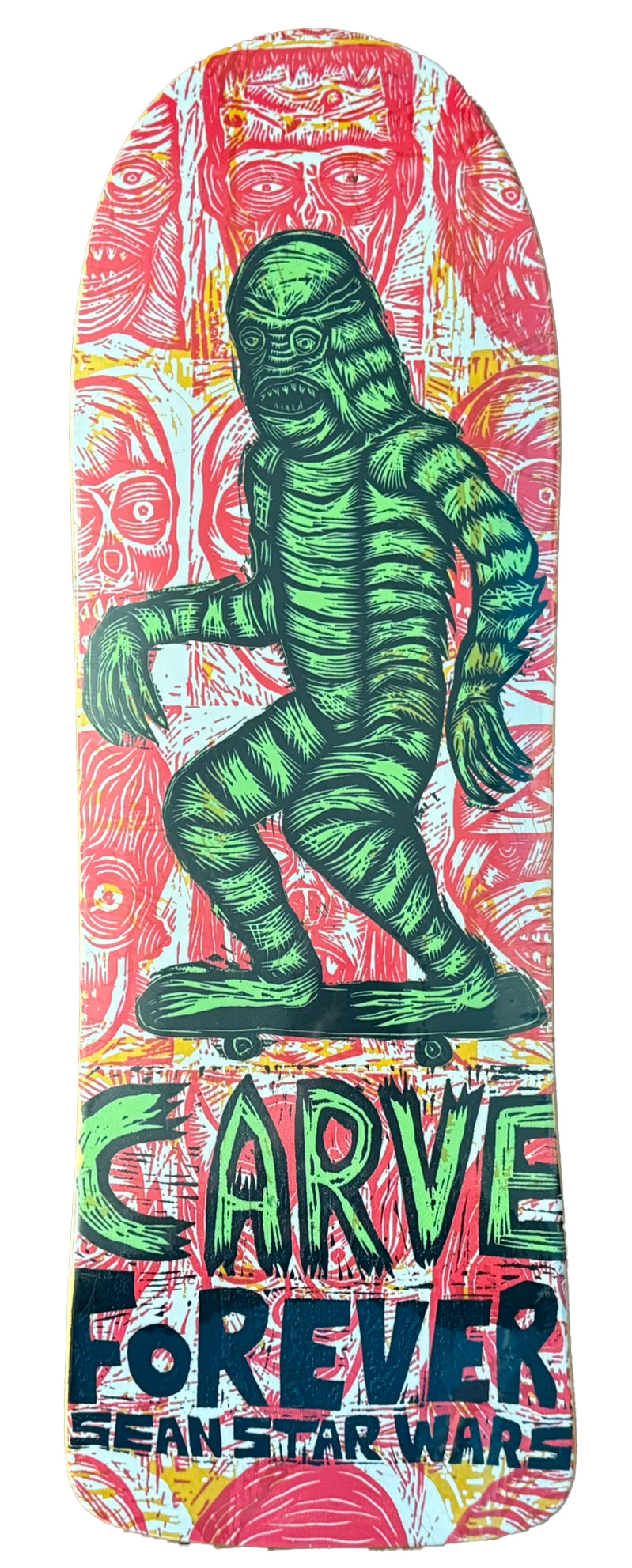 This is one of the most exciting projects I've ever been a part of! Ever since I was 15 Skateboarding has been a huge influence on my life. I'm almost 55 now and I can't believe what I'm getting to do these days! After my initial run of commissioned graphics for Select Distribution (Formerly VISION Skateboards) I am now partnered with Select to produce skateboards with my Woodcut Graphics on custom shapes! We will be offering a ton of new graphics in the upcoming months. Each deck will be signed by me on the topside of the deck