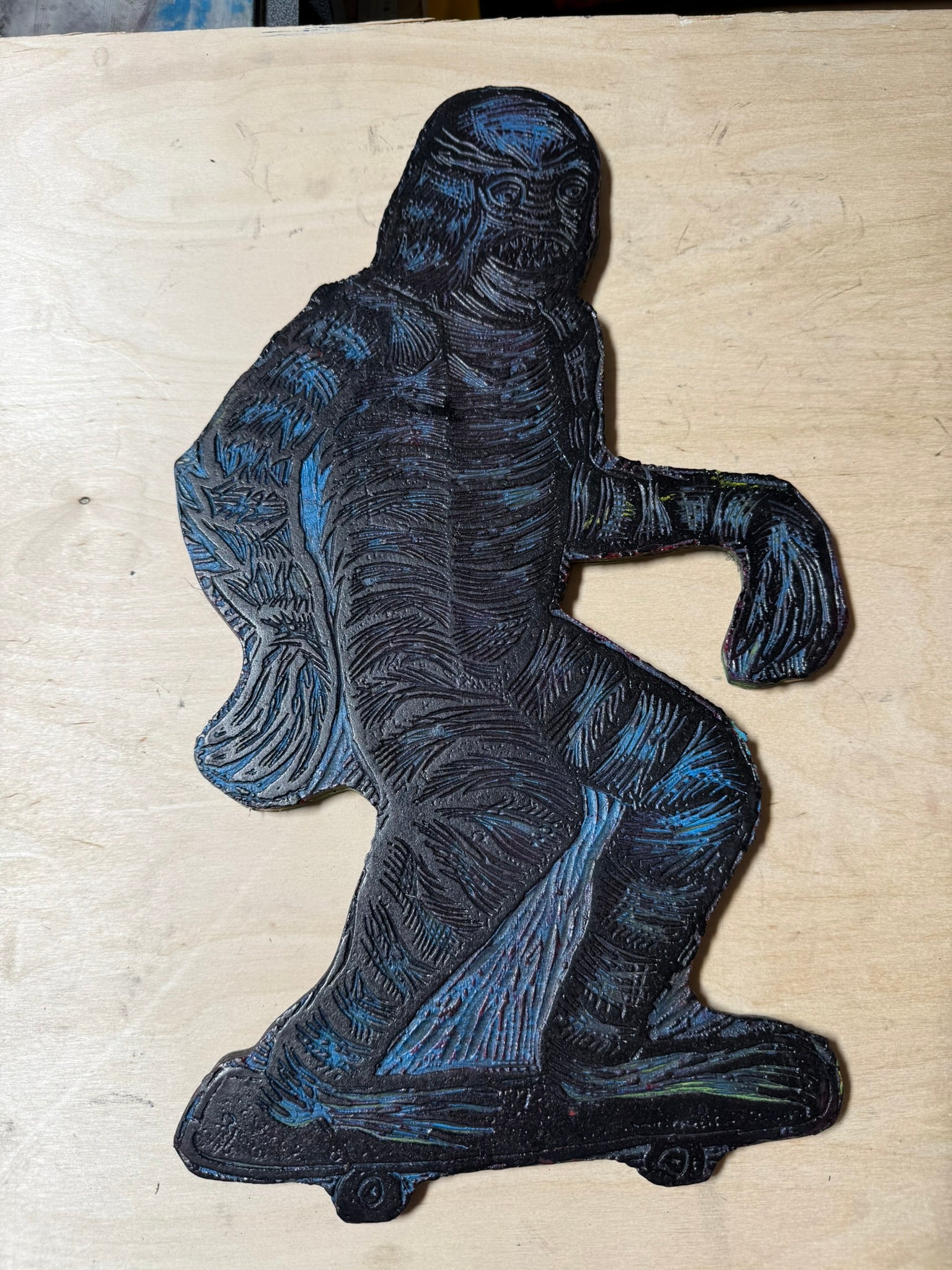 ⩙ My woodcuts are carved from Baltic Birch or Japanese Shina using an assortment of Japanese gouges printed on American-made presses, fueled by ice-cold Mountain Dew with Guided by Voices always playing loudly in the background!