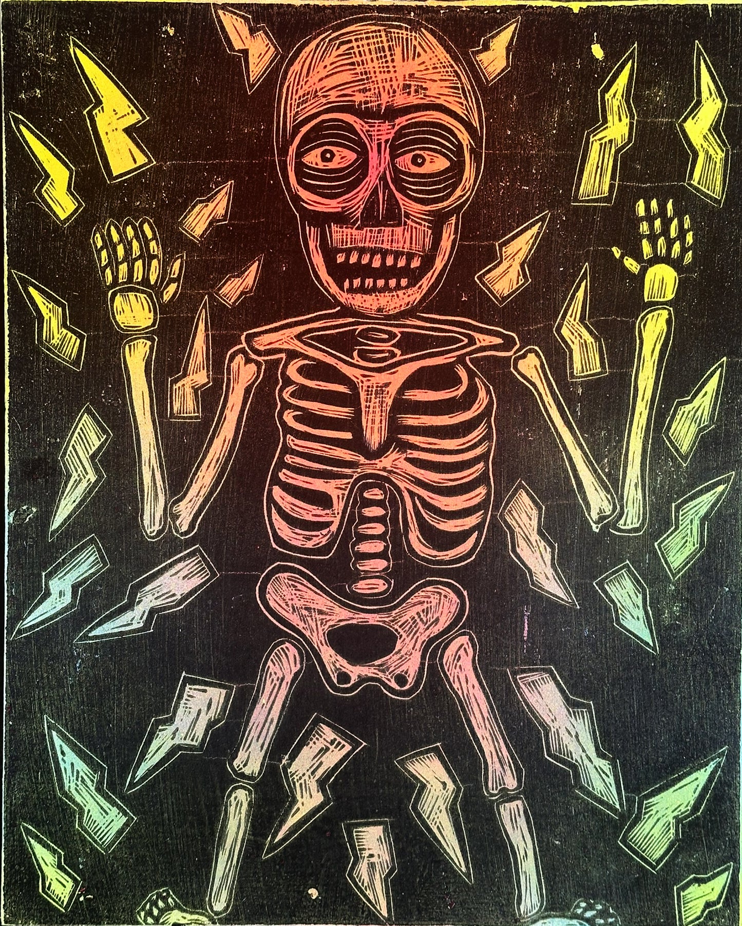My woodcuts are carved from Russian Birch plywood using an assortment of Japanese gouges fueled by ice cold Mountain Dew