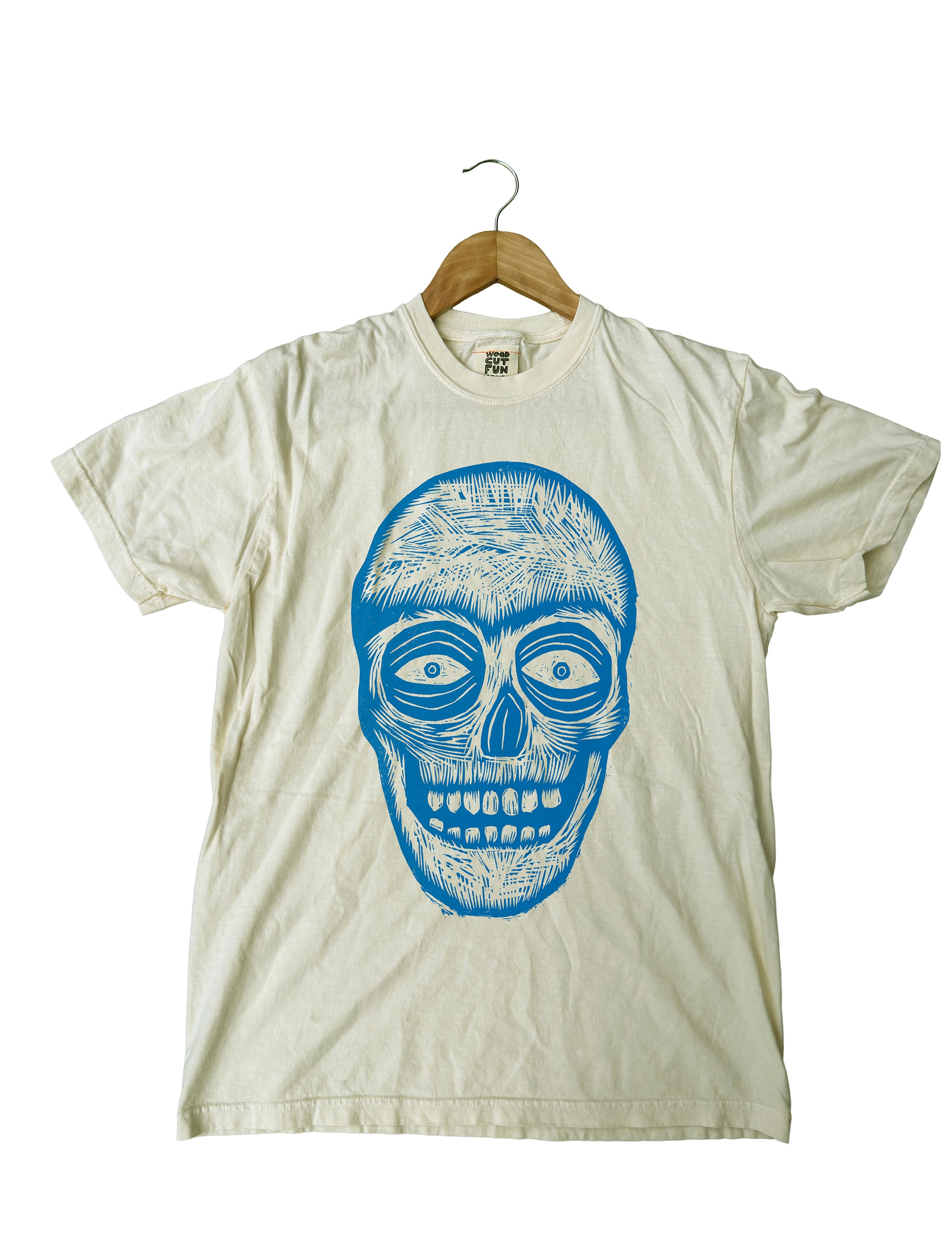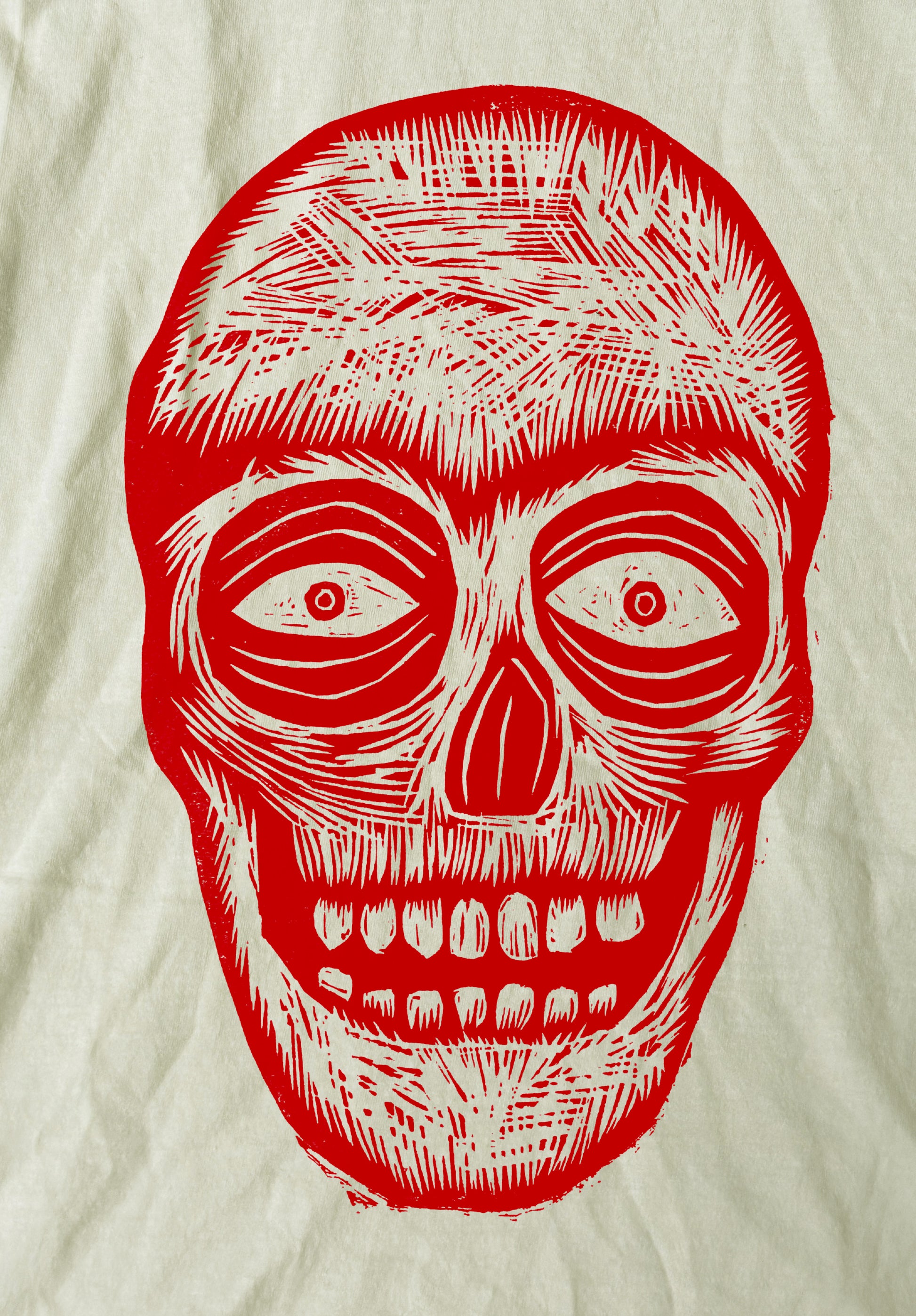 I love this skull woodcut! He's look straight at you and thinking about the past!
