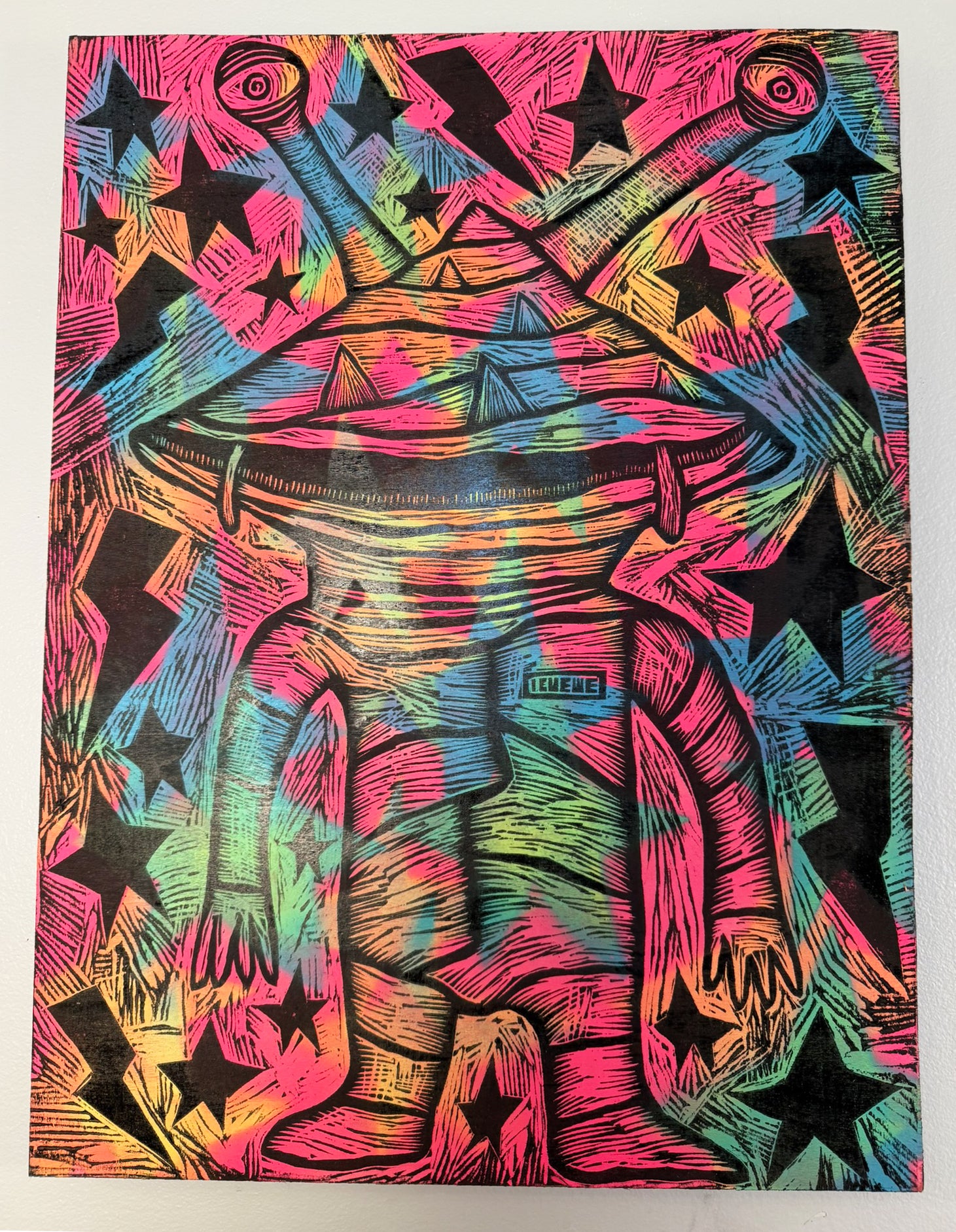 ⩙ My woodcuts are carved from Baltic Birch or Japanese Shina using an assortment of Japanese gouges printed on American-made presses, fueled by ice-cold Mountain Dew with Guided by Voices always playing loudly in the background!