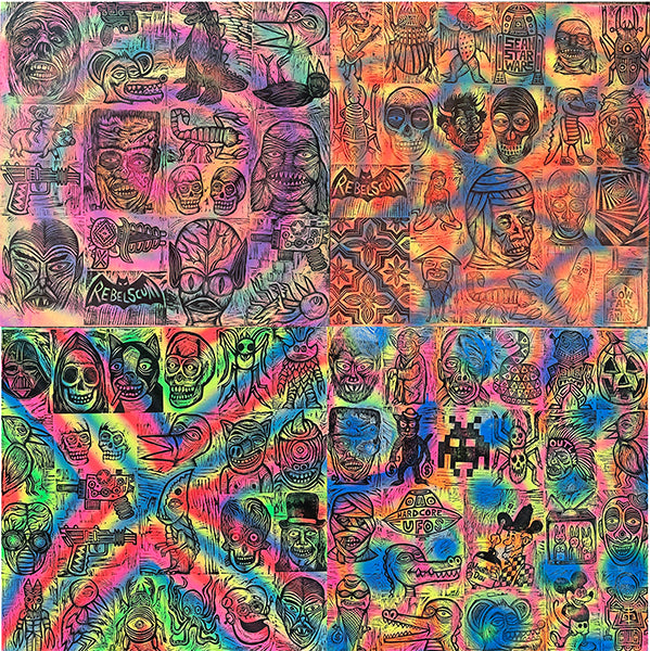 My woodcuts are carved from Russian Birch plywood using an assortment of Japanese gouges fueled by ice cold Mountain Dew