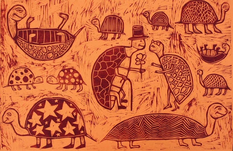This is the Woodcut for Week number Two in my One Woodcut a Week project... Turtles