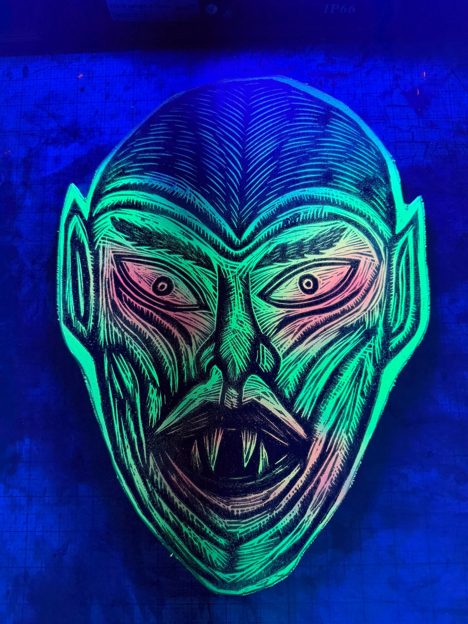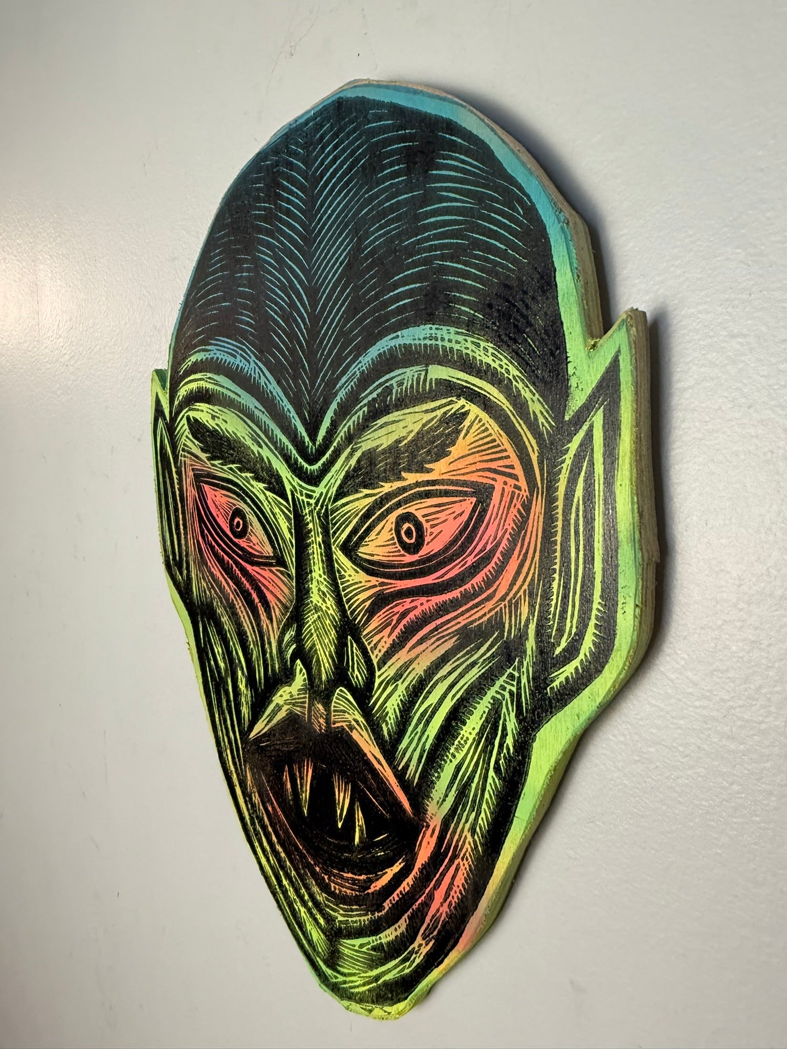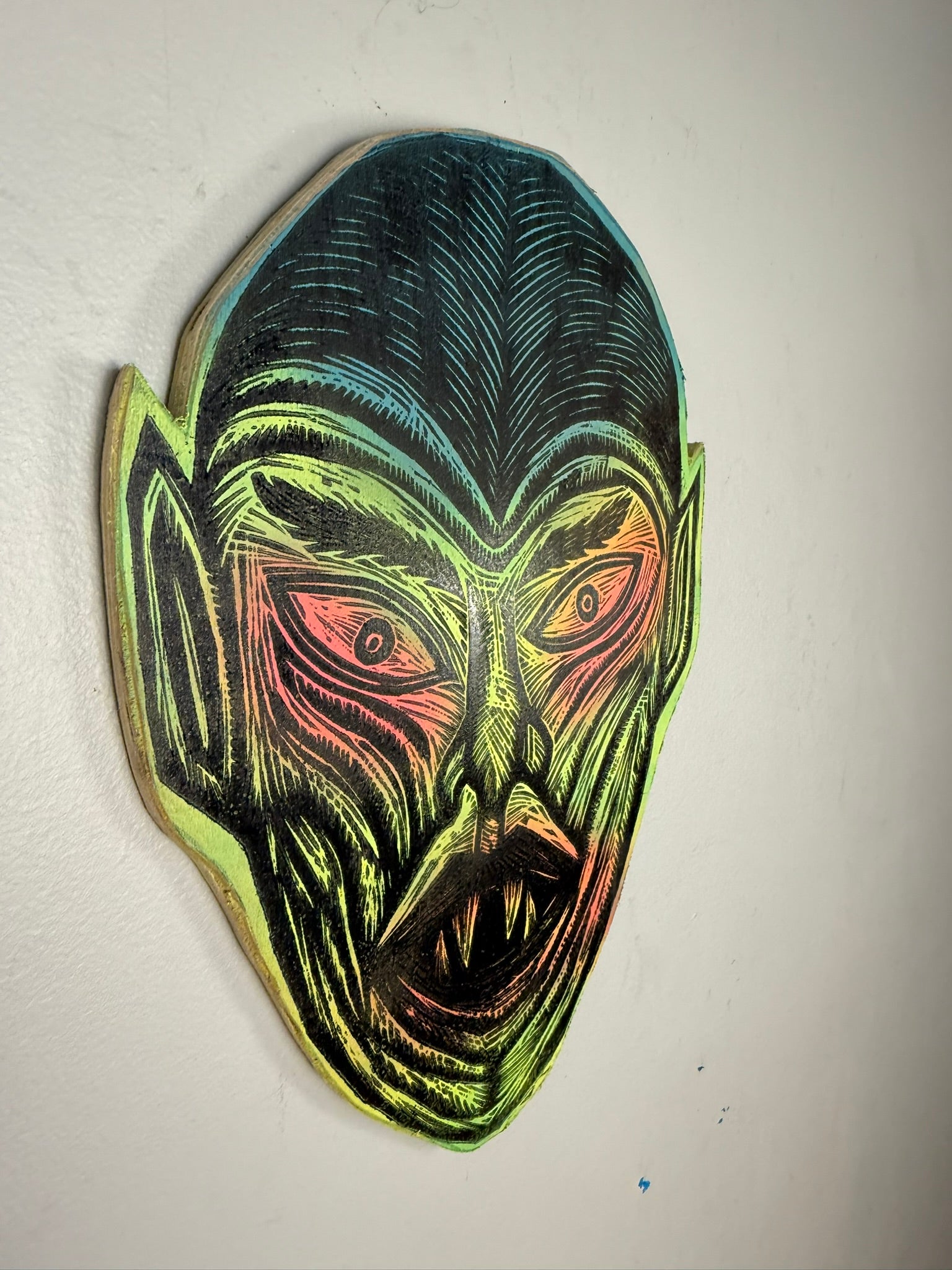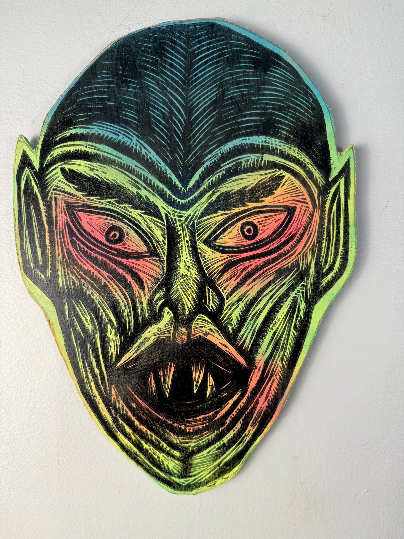 Vampire Woodcut Handprinted Wall Art Wooden Panel