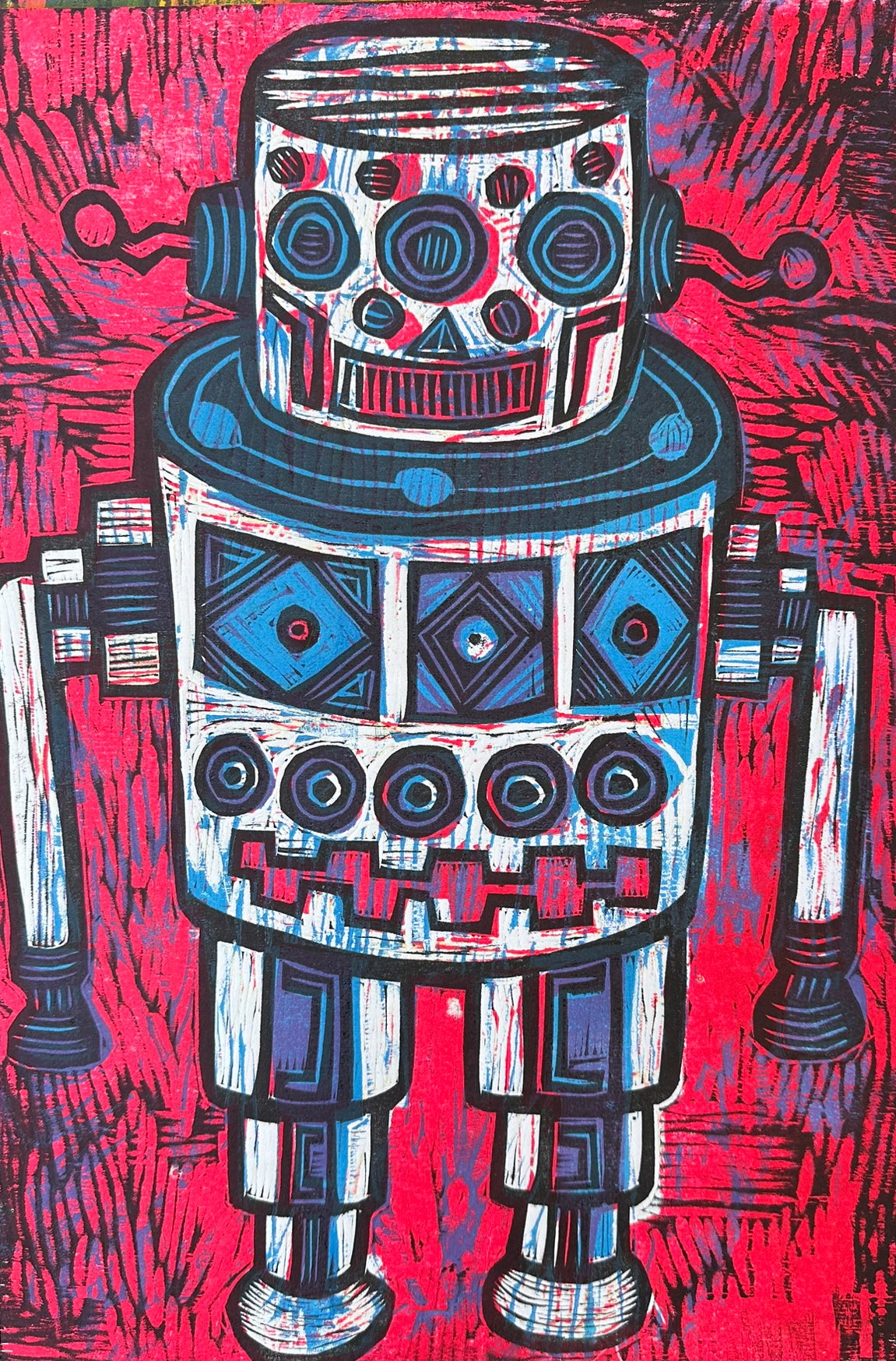 ⩙ My woodcuts are carved from Baltic Birch or Japanese Shina using an assortment of Japanese gouges printed on American-made presses, fueled by ice-cold Mountain Dew with Guided by Voices always playing loudly in the background!