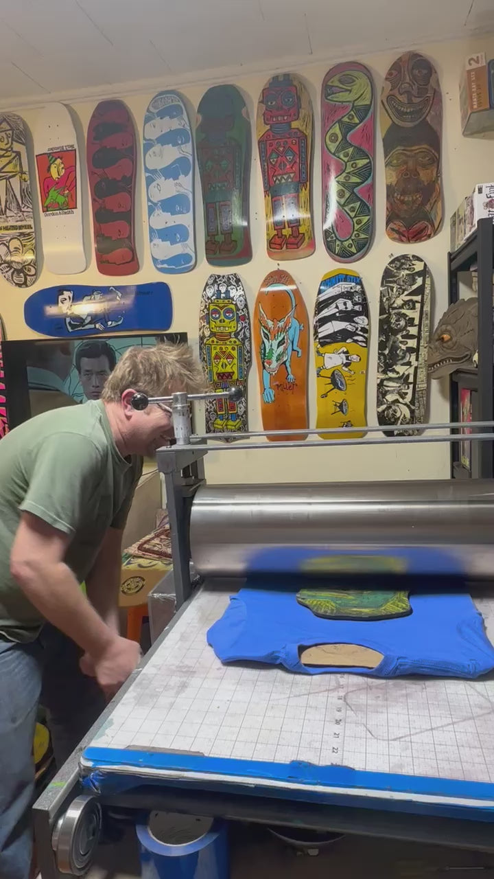 My woodcuts are carved from Russian Birch plywood using an assortment of Japanese gouges fueled by ice cold Mountain Dew